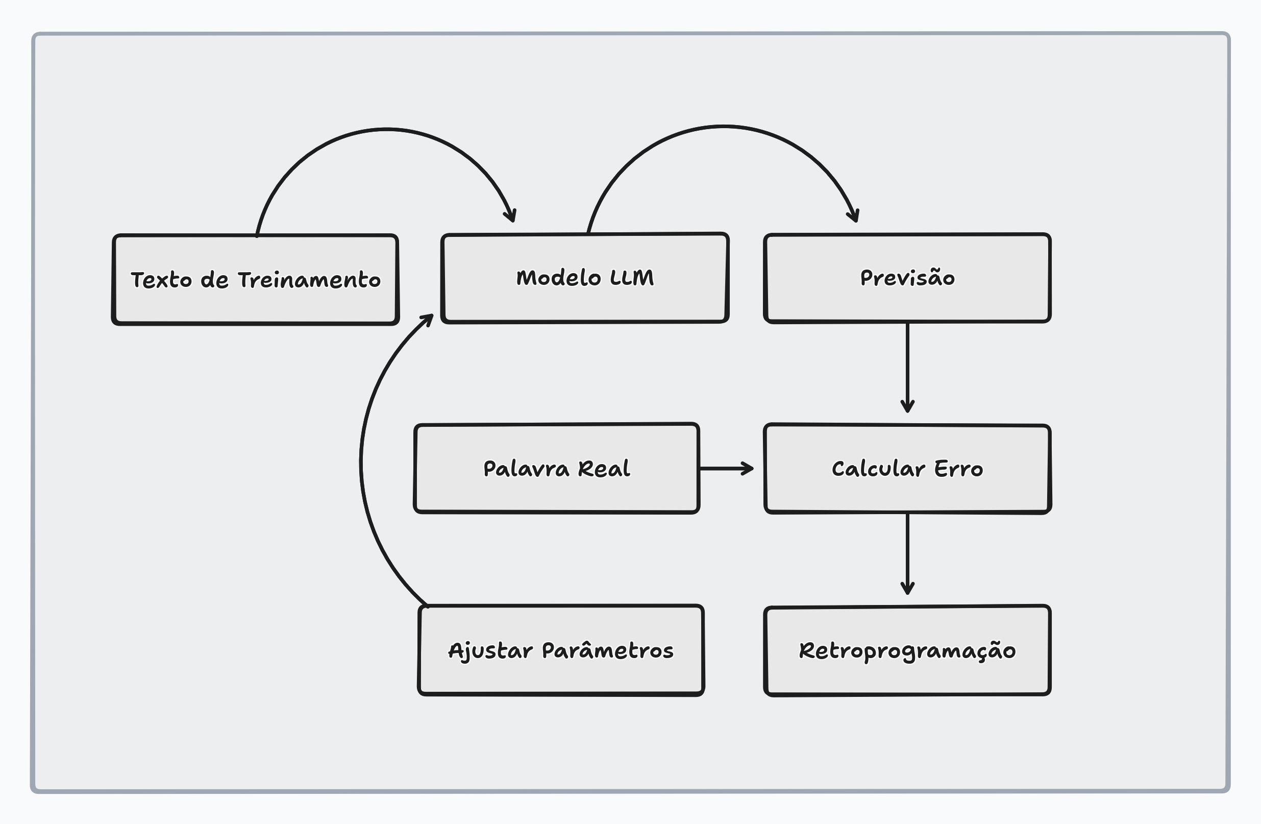 O modelo processa todo esse texto através de um objetivo simples: dado um trecho de texto, prever qual é a próxima palavra. Parece trivial, mas esse objetivo aparentemente simples força o modelo a desenvolver uma compreensão profunda da linguagem, incluindo: