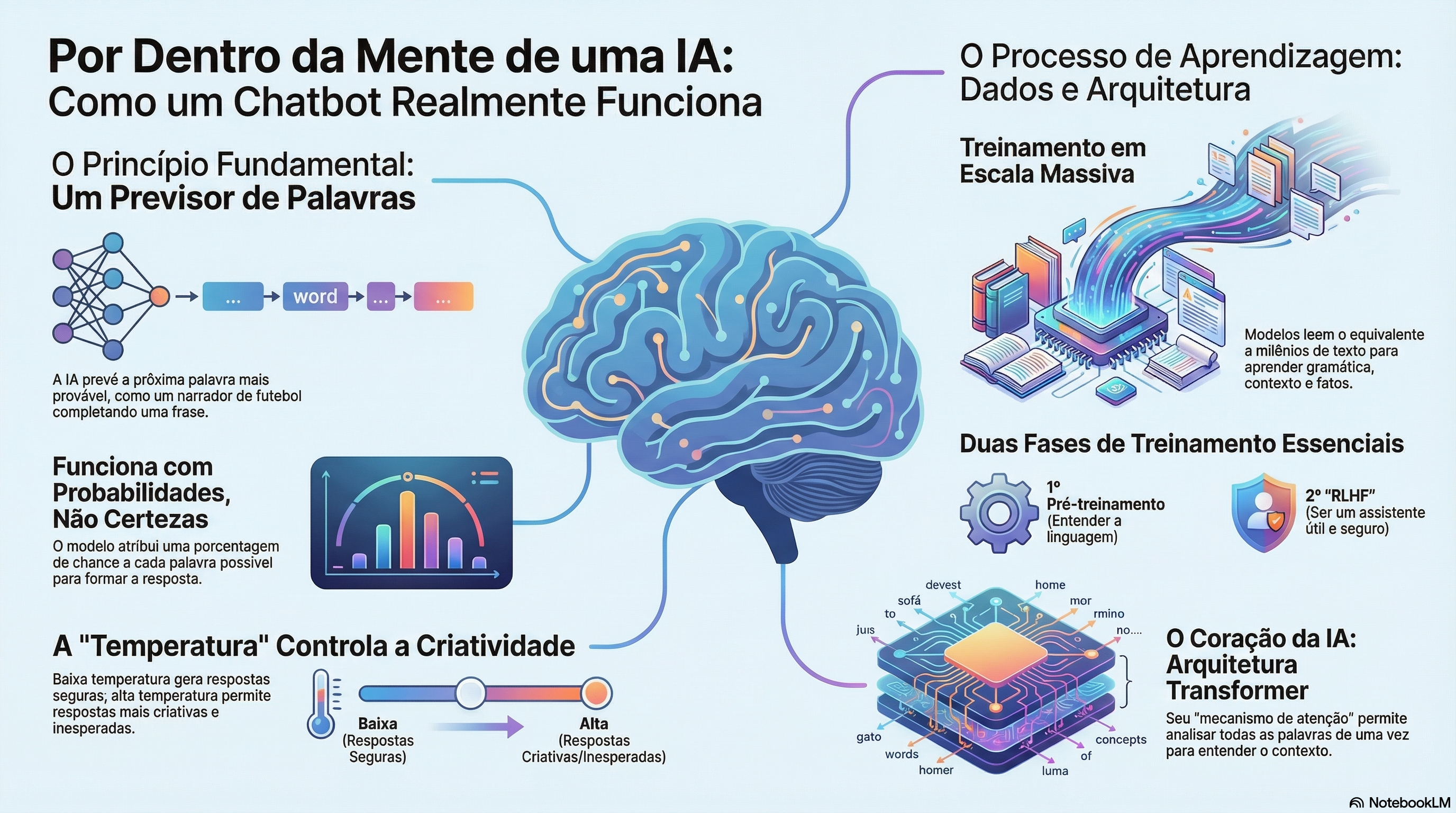 Isso explica por que você pode fazer a mesma pergunta várias vezes e receber respostas diferentes — assim como dois narradores nunca descreveriam o mesmo lance da mesma forma, o modelo introduz variação através desse processo de amostragem.